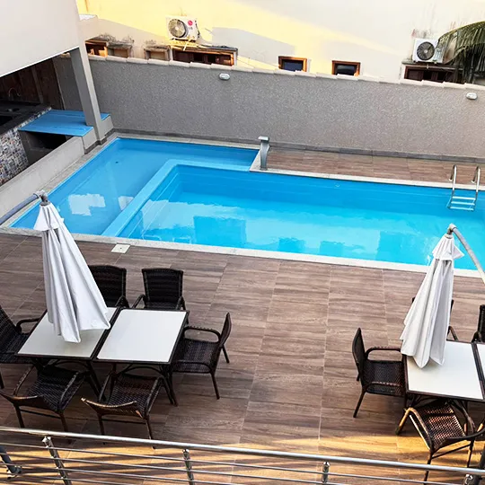 Temos uma piscina ao ar livre perfeita para relaxar depois do dia na praia ou curtir o pôr do sol em família.