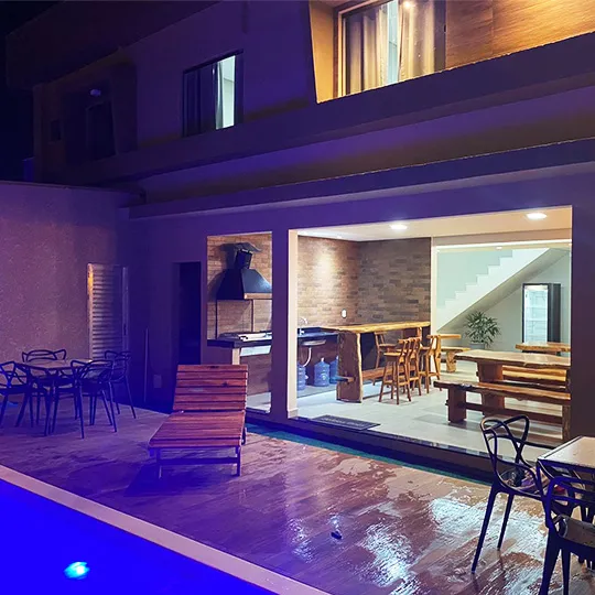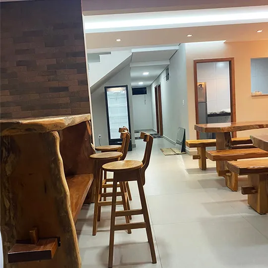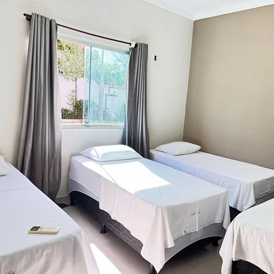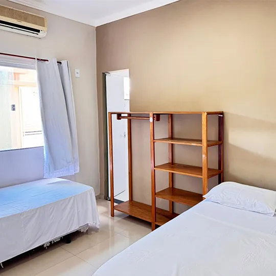 Escolha entre quartos com suíte confortáveis ou Flats completo, com cozinha equipada e ambiente espaçoso